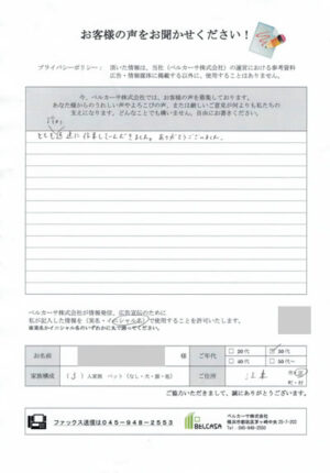 施工をご利用いただいたお客様より、次のようなコメントをいただきました。